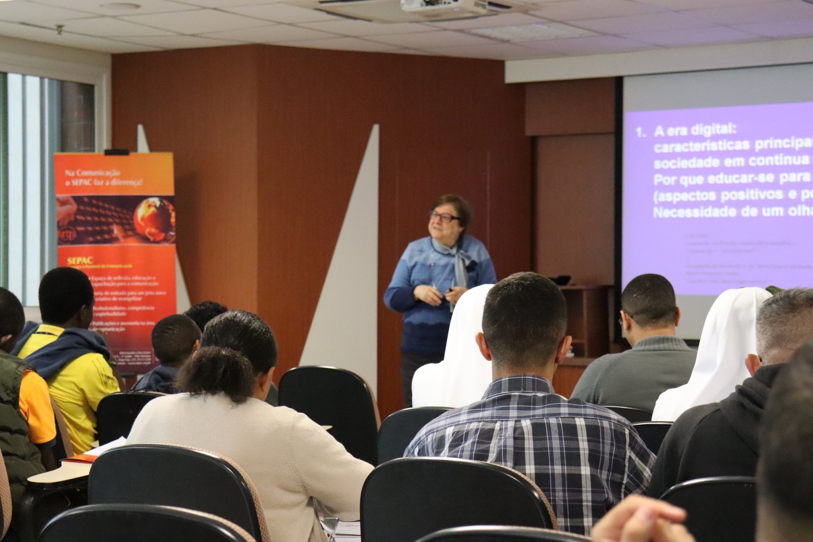 Os corredores do SEPAC estão vibrantes com a participação dos alunos do 1º ano de Teologia em uma aula intensiva sobre Educação em Comunicação II. A disciplina, ministrada pela Prof.a Dra. Helena Corazza, tem como objetivo preparar os futuros profissionais religiosos para desempenharem com excelência o papel crucial da comunicação em seu cotidiano vocacional.