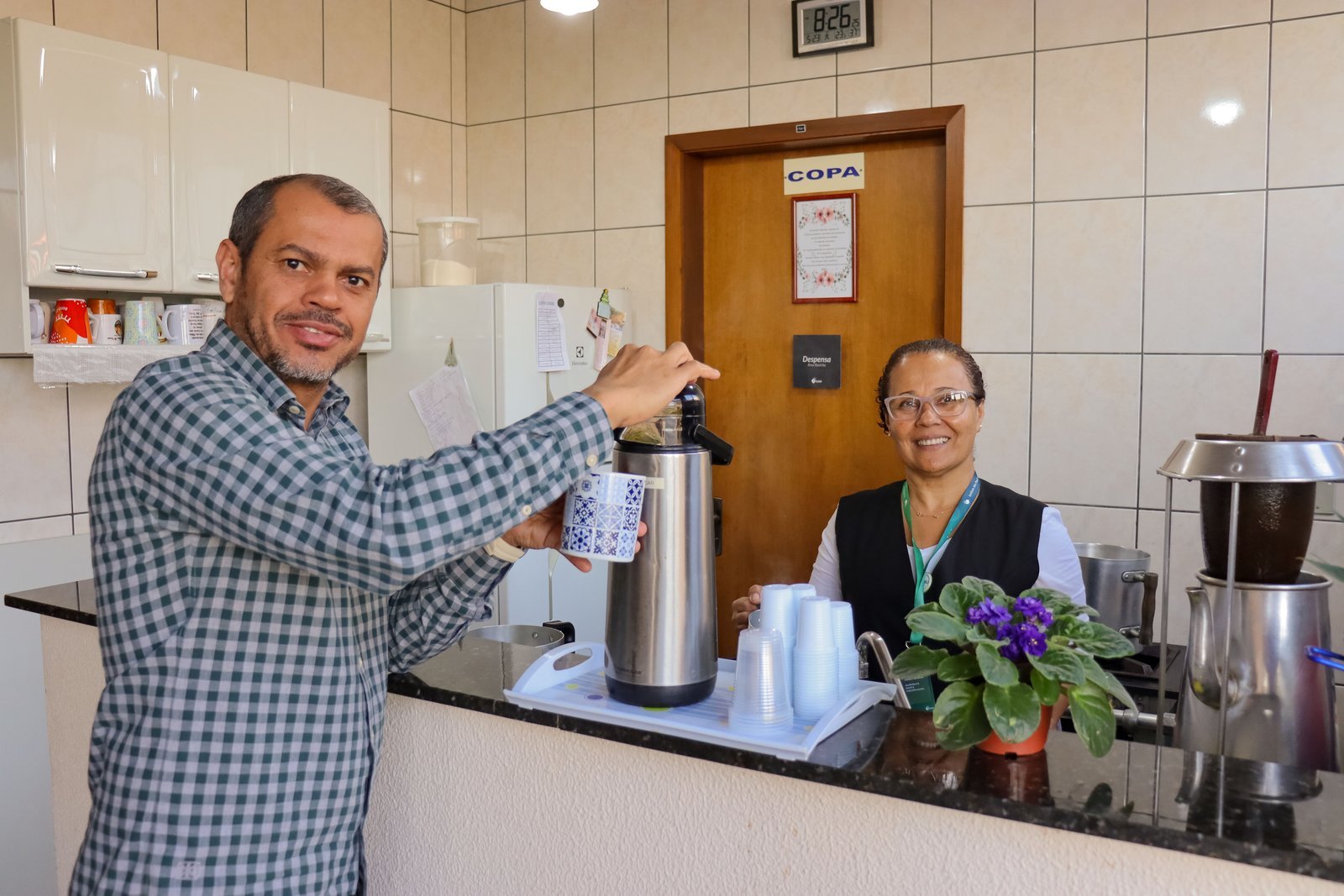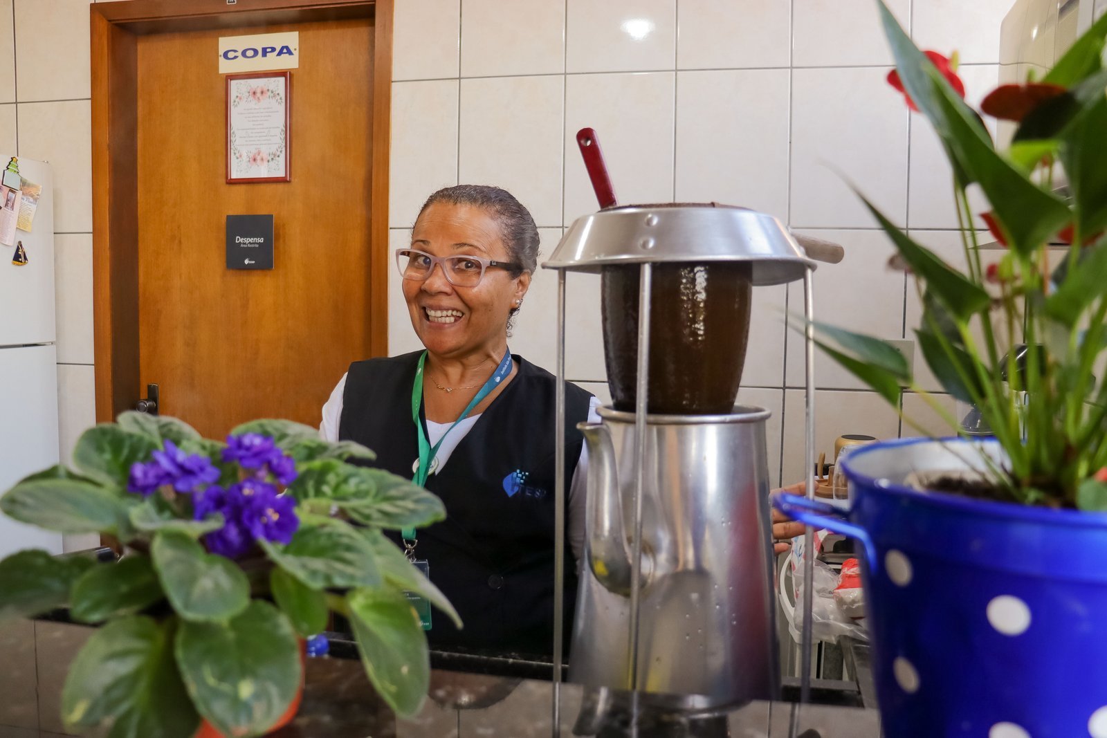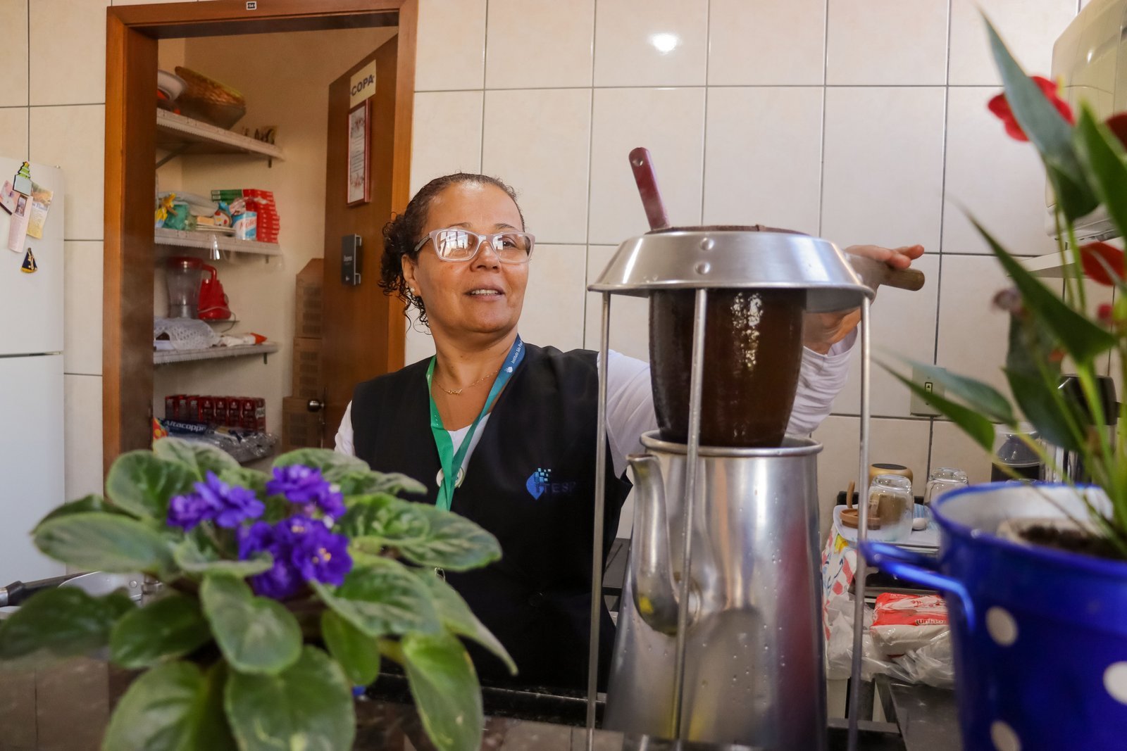Aqui no Instituto essa bebida tão querida é preparada pelas mãos da Zênia, uma colaboradora/educadora que com seus 1,50m de altura consegue levantar litros e mais litros de água quente por dia para fazer o cafezinho dos professores, funcionários e alunos. Uma tradição itespiana que já vem há mais de 20 anos, passando por gerações de teólogos. Quem pisou pelo ITESP entre esses 20 anos conhece a história da Zenilda e tem com ela muitas memórias afetivas, assim como o café, advindas dos períodos entre uma aula e outra.