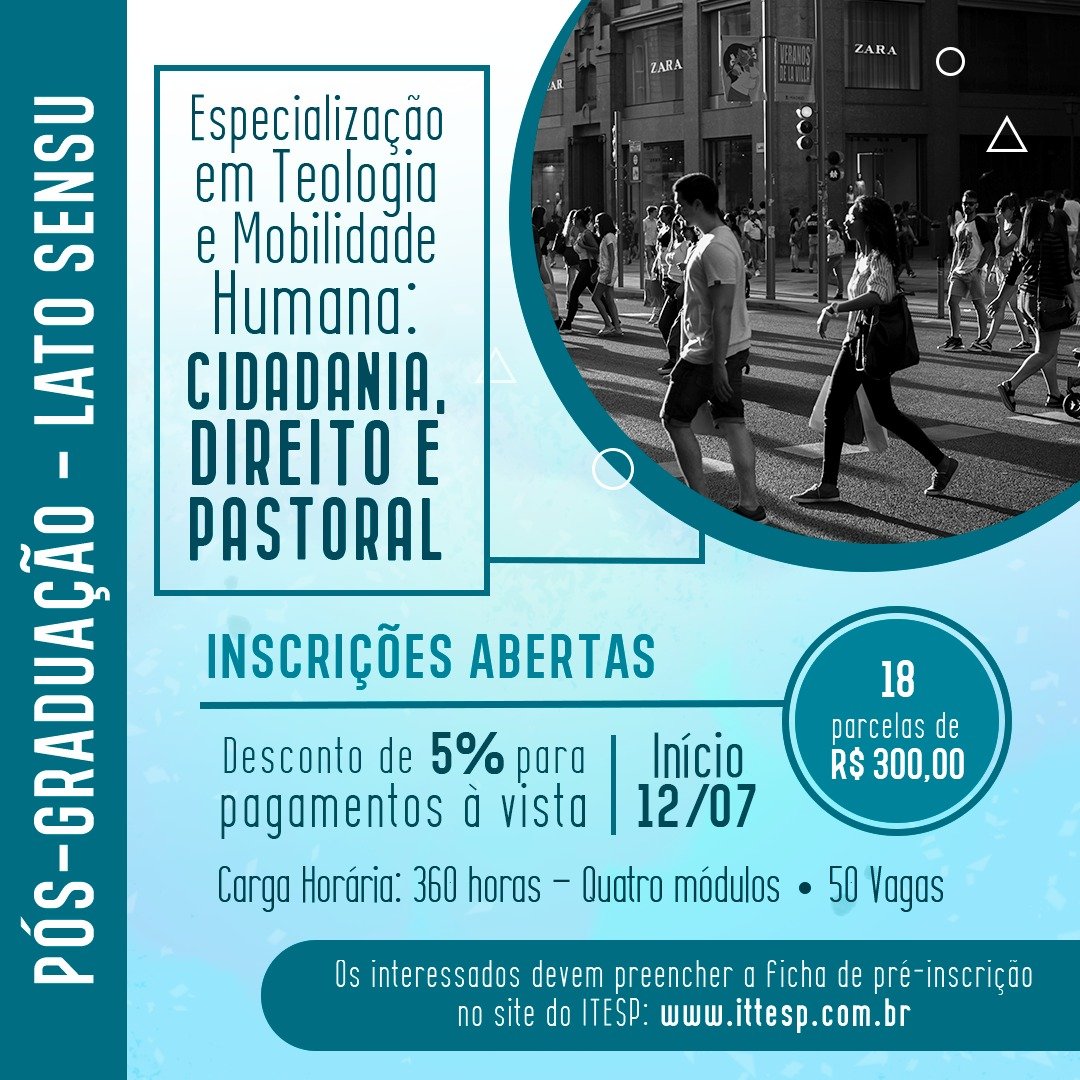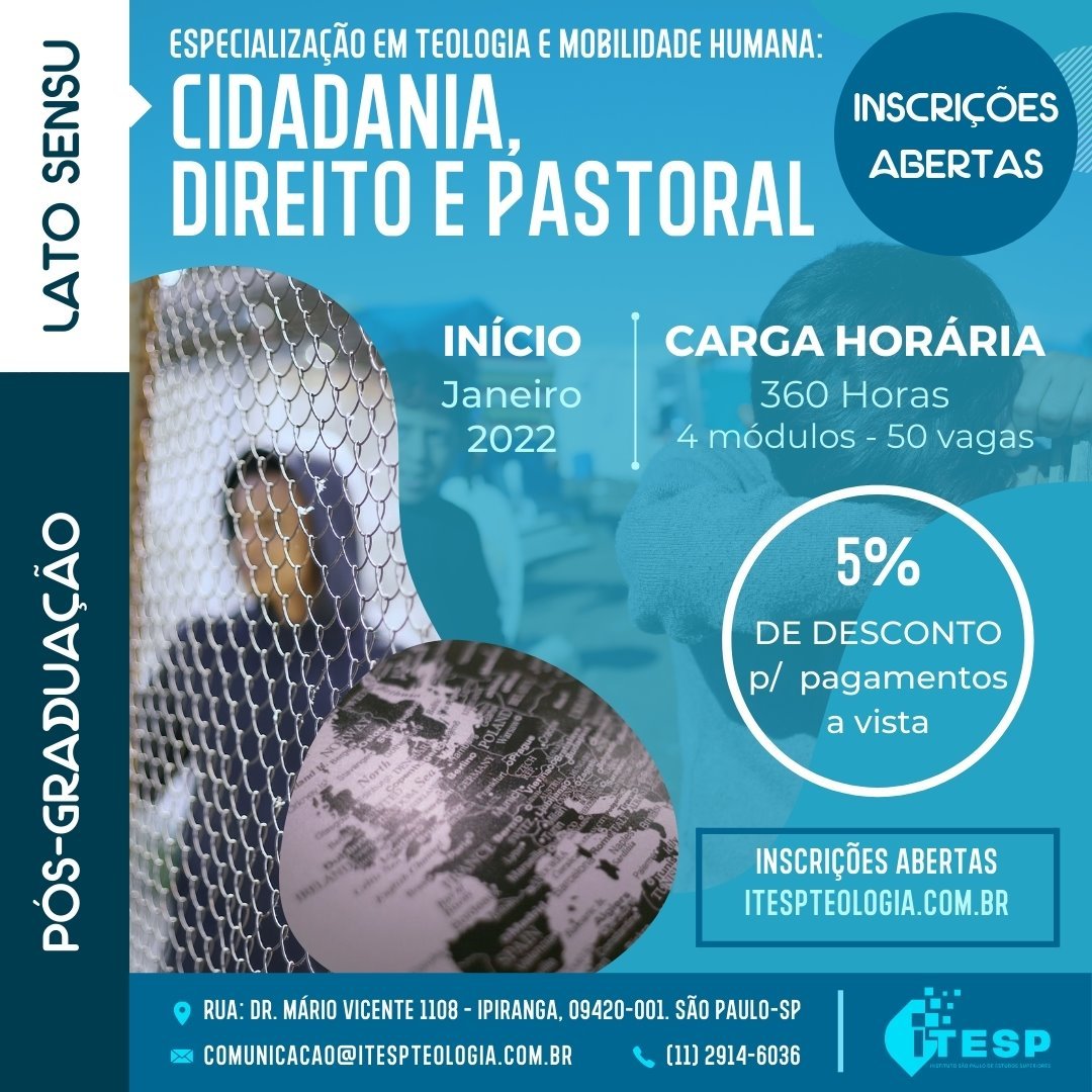 Especialização em Teologia e Mobilidade Humana: Cidadania, Direito e Pastoral